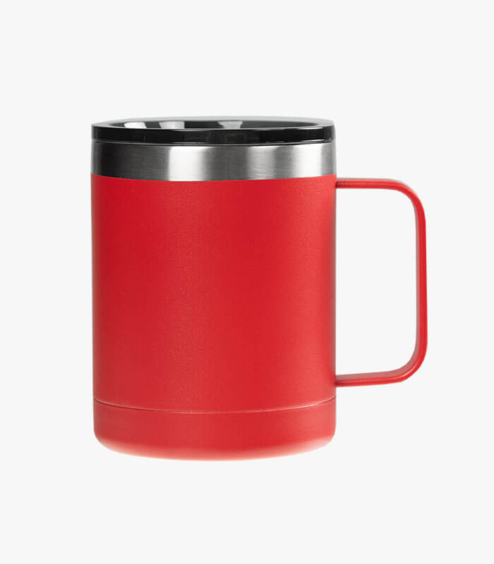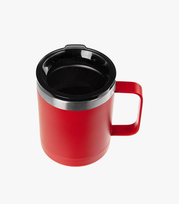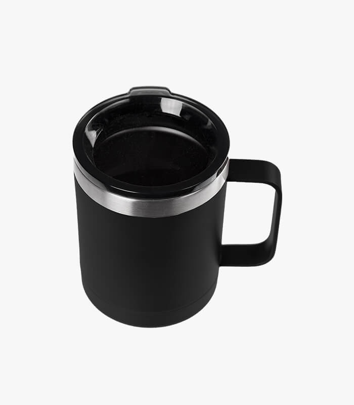 Our stainless steel double wall vacuum insulated 12oz will keep your coffee hot for hours. It’s designed with a matte gator coating for non-slip grip and a handle to secure your coffee while sipping. The tinted shatter proof lid works as a splash guard to help prevent any coffee spills.