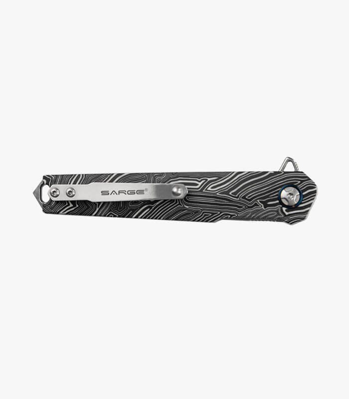Crafted with the highest specifications – SARGE’s Dimension knife is one of a kind. The 3.65″ stiletto blade is manufactured with D2 steel that is high carbon, high chromium, and high-end. D2 steel has a high wear resistance and creates a tough blade that holds an edge. With the high chromium content the D2 blade is more corrosion resistant than most steels and offers a hardness in the range of 55-62 making it a high-end knife steel.